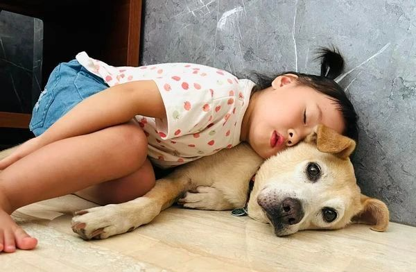 但近日,小朋友身体有些不舒服,而乖乖仿佛察觉到了,竟然没有像往常一样拒绝她黏过来。