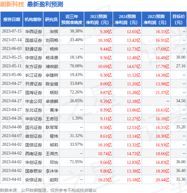 以下是详细的盈利预测信息: