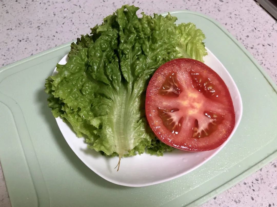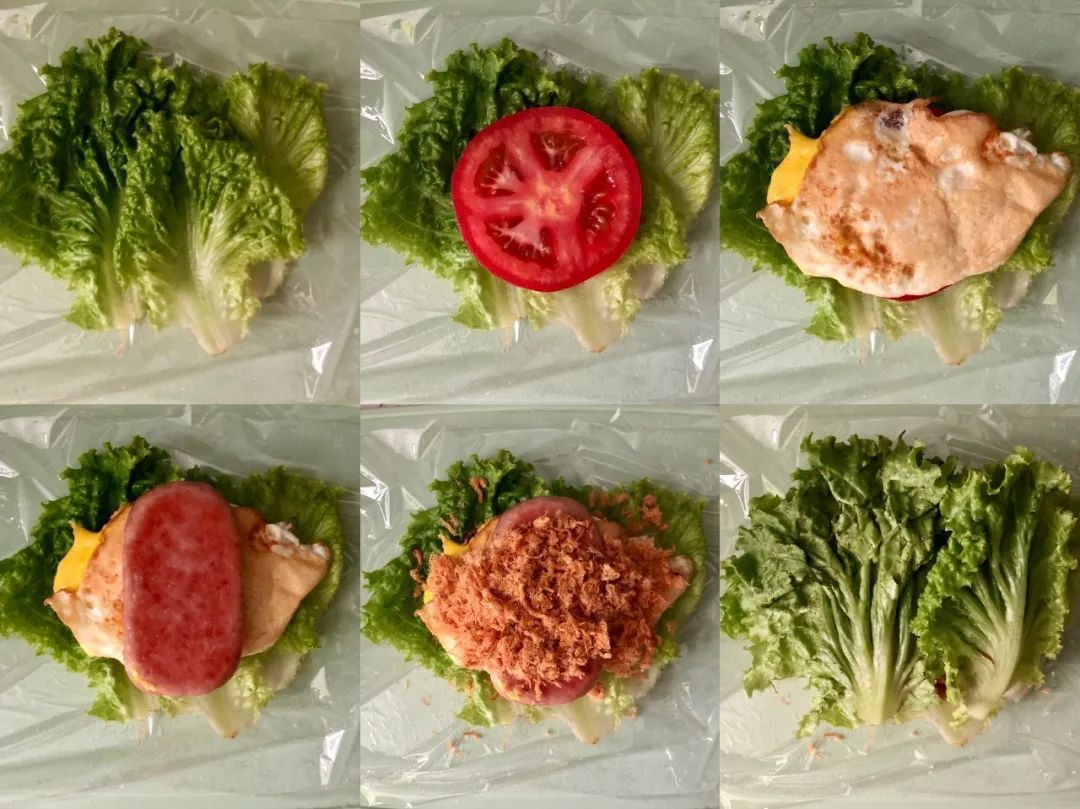 蔬菜三明治没有面包这样的碳水化合物,整个三明治都是生菜包起来的,里面有肉类、鸡蛋、西红柿、肉松,满满当当,不愧是风靡全网的减脂餐!同款做起来吧~