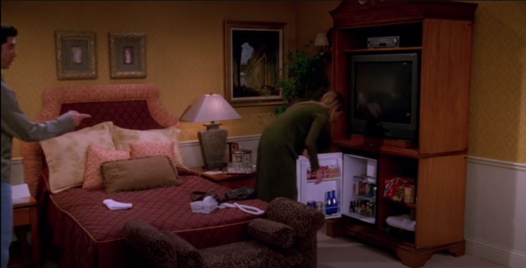 20世纪后半期的时间里,迷你吧成为了旅行生活方式中最常见的元素,就如《老友记》第五季中,Rachel和Ross在拉斯维加斯的赌场酒店中就把迷你吧里的小瓶酒和零食“炫”了个精光。而如今,无趣的迷你吧与焕新后的客房看起来并未成为最亲密的伙伴,产品的配备与呈现的精致现代生活方式似乎也有所脱节。