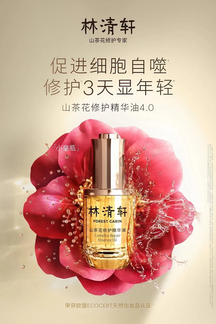 第二个阶段便是2016年,林清轩下定决心向高端化转型。彼时,他们将全部力量都投入到了一个单品的科研中,而诞生于此的山茶花油不但开创了“以油养肤,以油抗老”的风潮,还在既没有广告,也没有推广的情况下收获了极高的口碑。仅2017年,该单品销量就达到了35万瓶。目前,山茶花油已历经四次迭代,累计产销2000万瓶,连续9年在中国高端油类护肤品市场遥遥领先。并连续多年在618、38、双十一等重要电商购物节上销量喜人,屡创销售奇迹,荣登“天猫双十一面部精华油热卖榜单第1名”。
