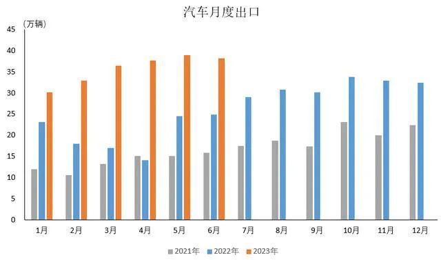 据中国汽车工业协会统计分析,2023年6月,汽车出口延续高速增长,继2021年全年出口超200万辆、2022年全年出口超300万辆之后,今年上半年汽车出口214万辆、同比增长75.7%。2023年6月,汽车企业出口38.2万辆,环比下降1.7%,同比增长53.2%;2023年1至6月,汽车企业出口214万辆,同比增长75.7%。1至6月,整车出口前十企业中,从增速上来看,比亚迪出口8.1万辆,同比增长10.6倍;奇瑞出口39.4万辆,同比增长1.7倍;长城出口12.4万辆,同比增长97.3%。