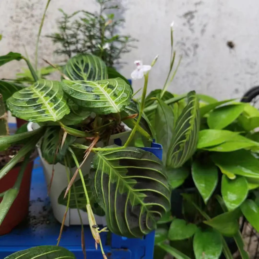 叶婵竹芋也分为红脉叶蝉竹芋(如上图)和白脉叶蝉竹芋(如下图),养护方法都一样的,它们喜欢较多的散射光,害怕强光直射,养在朝东或朝北的阳台边,就是很不错的选择。