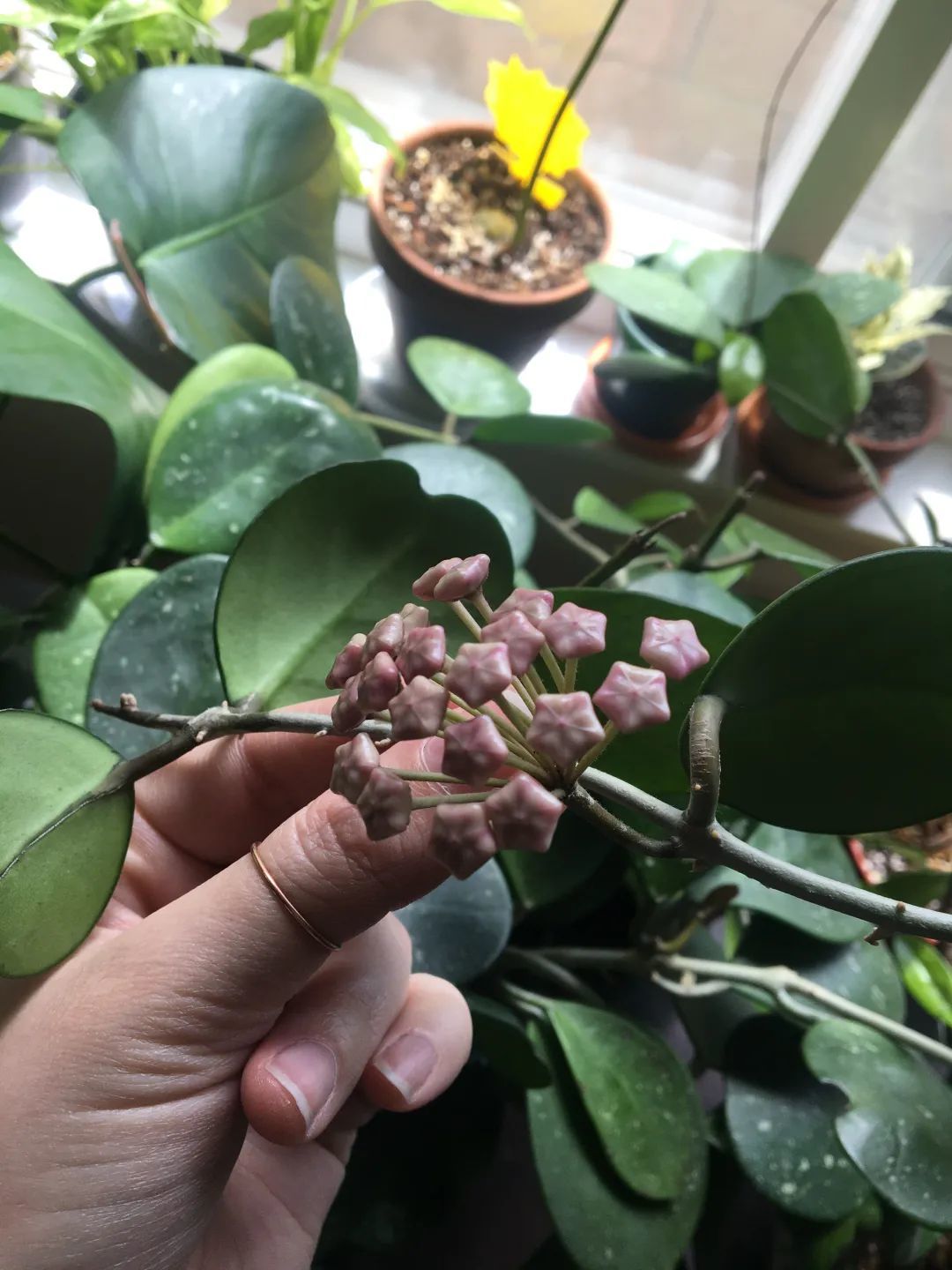 球兰的品种极其丰富,如果你喜欢特别一点的球兰品种,可以选卷叶的,或者叶子像领带一般的,还有花叶和心形叶子的品种。