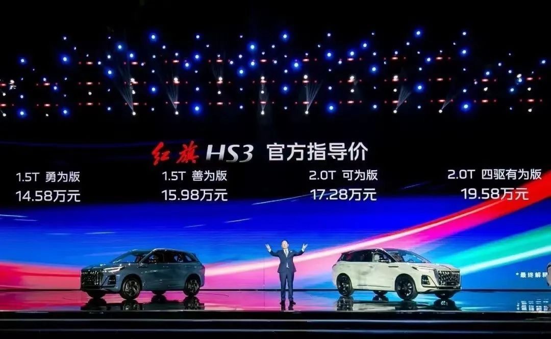 7月17日晚,一汽红旗旗下全新紧凑型SUV——红旗HS3正式上市,新车共推出4款车型,售价区间为14.58万元-19.58万元。
