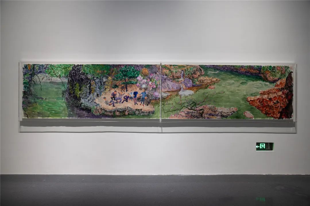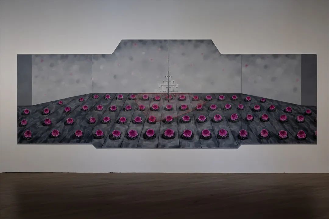 张晓刚《舞台5号:羽衣甘蓝》;布面油画;218 cm × 600 cm;2022
