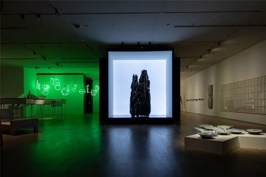 “未来考古”版块也试图呈现语意和情境二者互渗的空间关系,故而没有安排固定的一条展线。观众可以 任选入口,既可以循着从现实生活逐渐过渡到艺术空间的方向进入,也可以循着从亘古逐渐走向现实与 未来的一条线路,错综复杂而有章可循。总之, “未来考古”这一版块的策展方式是将追溯历史与面向未 来进行多层叠合,引导观者在“境”中思“意”,在“意”中自造其“境”。