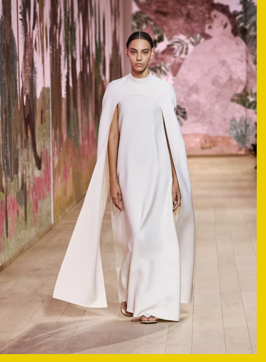 Dior 2023秋冬高定系列由创意总监Maria Grazia Chiuri打造,在法国罗丹美术馆举办。巧合的是,创意总监Chiuri在设计理念中体现的“Apparent Simplicity”极简主义与Valentino本季的“化繁为简”不谋而合,但是二者却有着不同的深意。