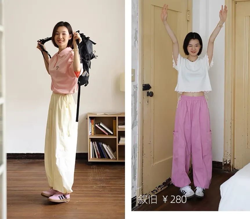 彩色的休闲裤,正好符合今年流行的多巴胺穿搭。