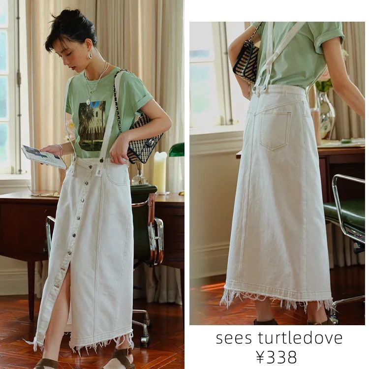 sees turtledove这条可以通过解开前排的扣子来自行打造出开叉,整体松松垮垮的,有种慵懒的调调。