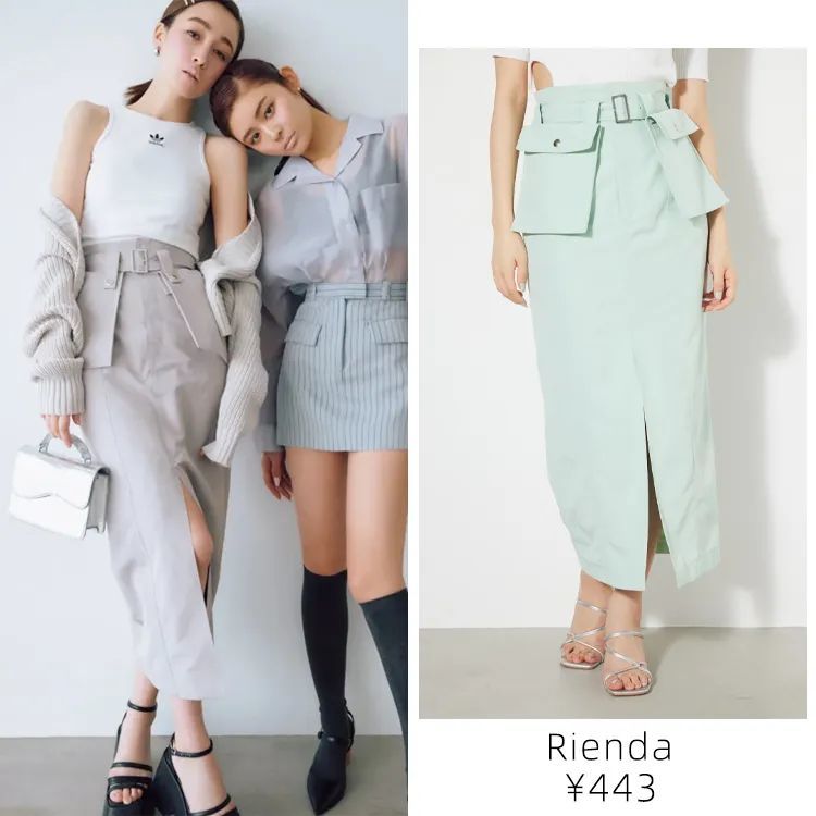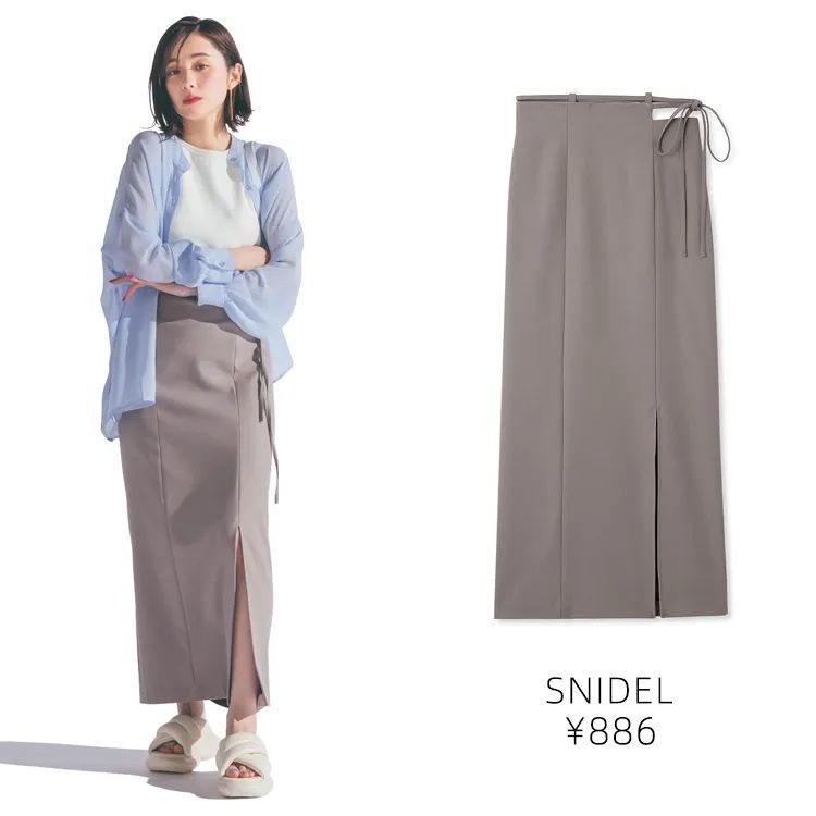 设计上也都有些小呼应,像SNIDEL这条在开衩一侧的腰头上,设计了一个方形挖洞。