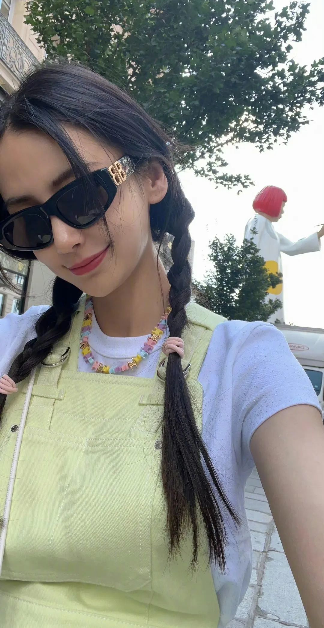 女明星穿搭里,最近baby的多巴胺小鸡黄背带裤小编也蛮印象深刻的,搭配串珠项链,好青春活力哦!看着心情都变好了!