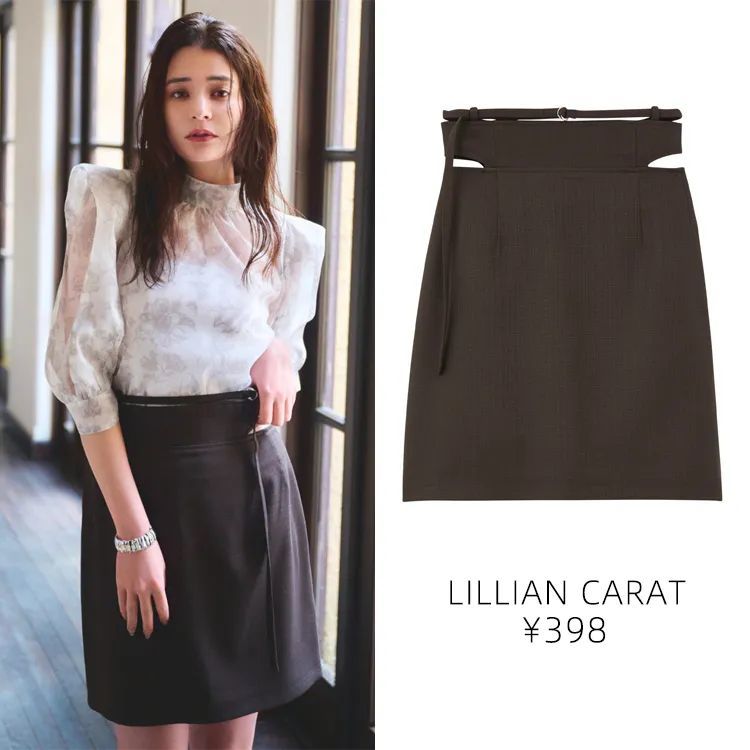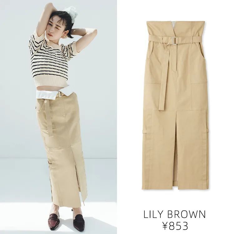 而且更流行小A字,不会很宽的那种。LILY BROWN这条超高腰的设计,配上腰带还能弄出花苞的效果。