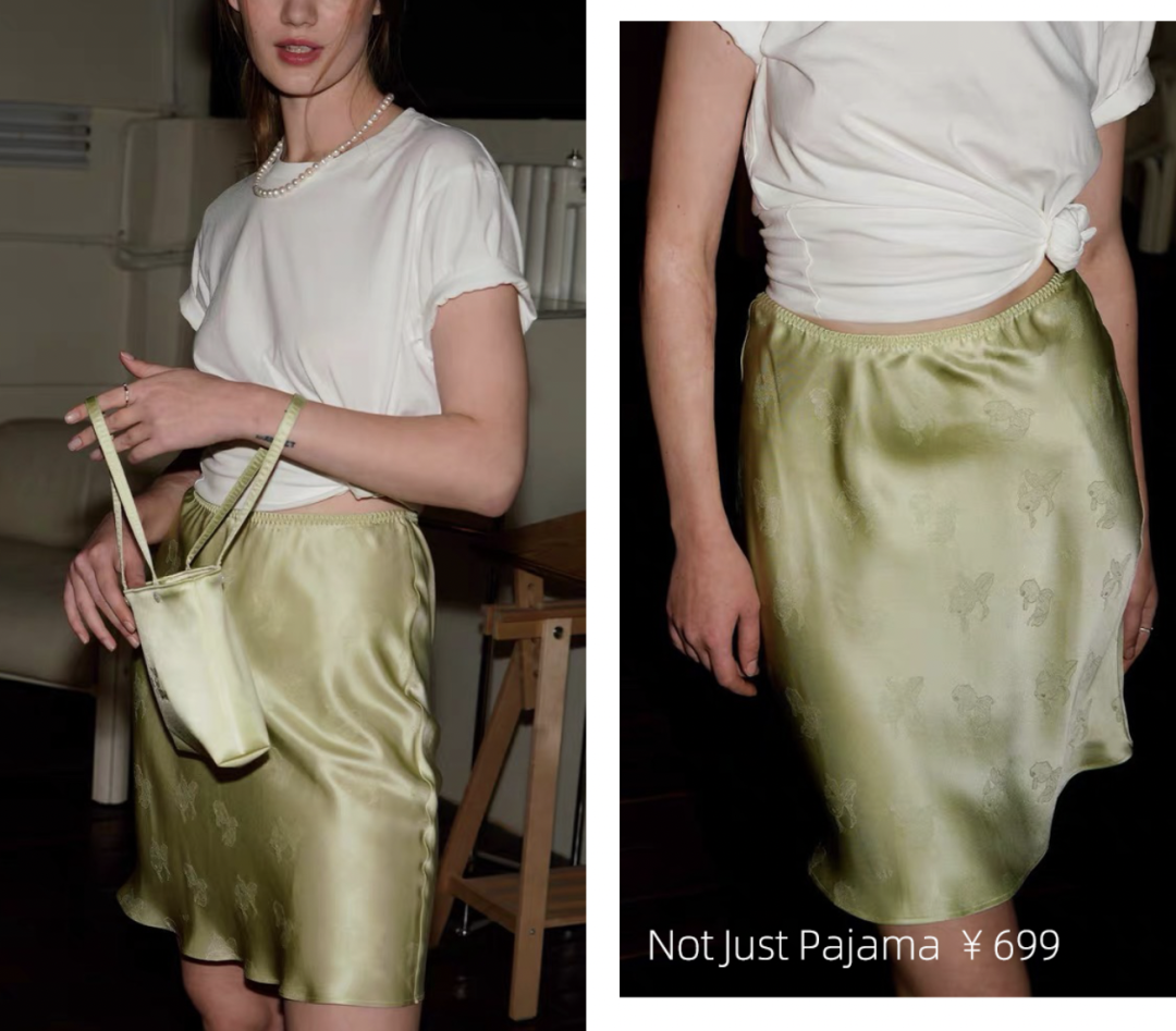 自带光泽感的缎面短裙真的好有气质啊!这套我要直接copy下来~