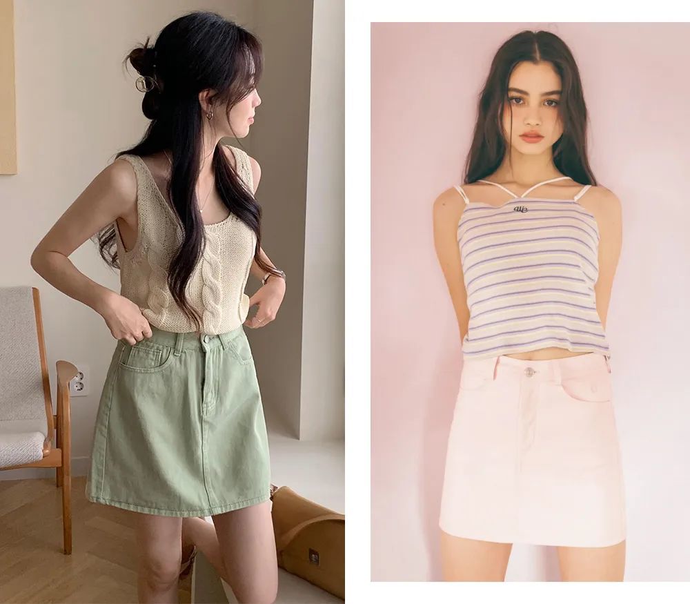 时髦girl们还可以看看彩色的牛仔短裙,今年热度超高,而且还自带减龄效果。