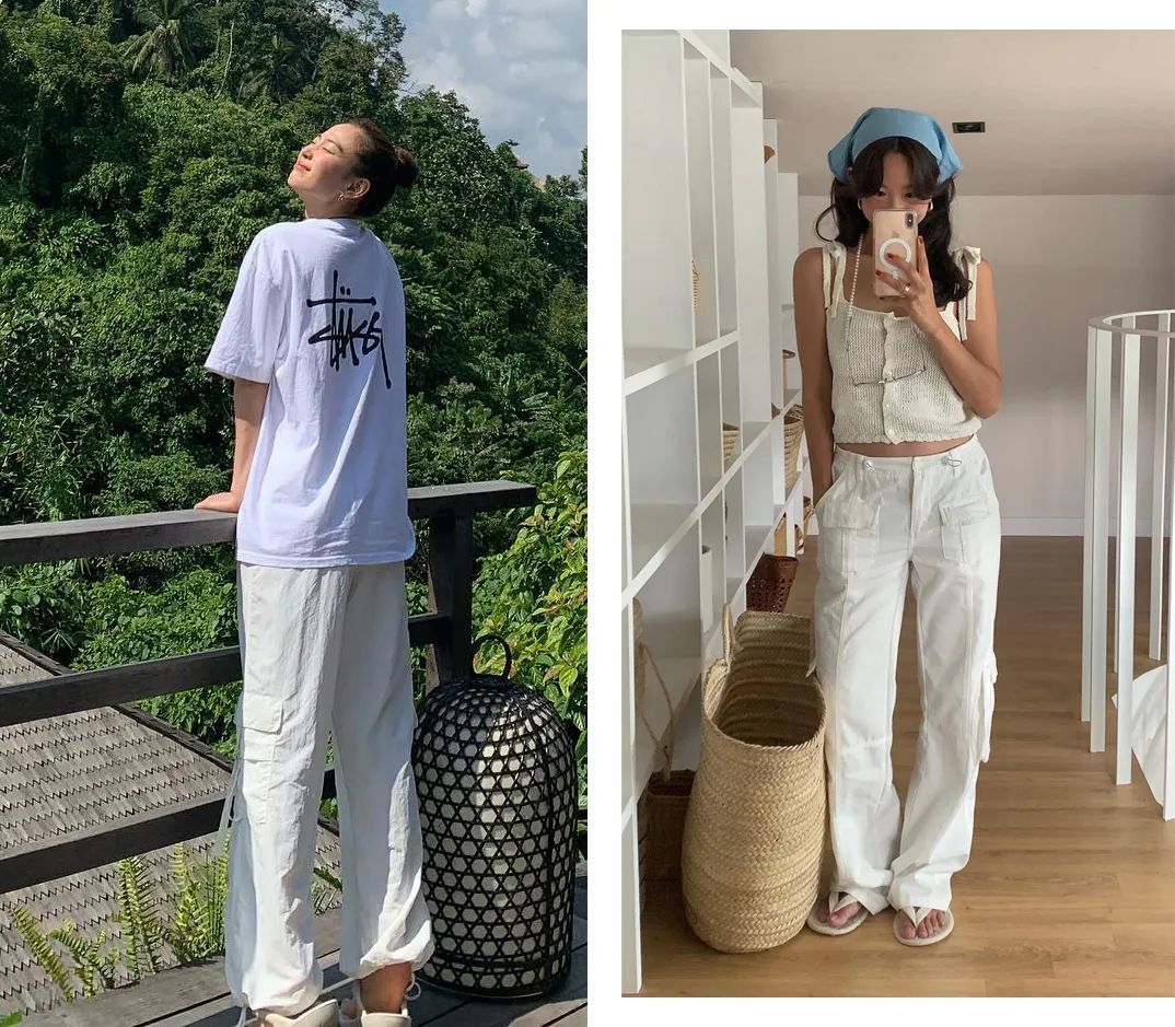 还有流行了很久的工装裤,夏天挑条轻薄款超好搭!不管背心还是T恤搭出来都有chill的感觉。