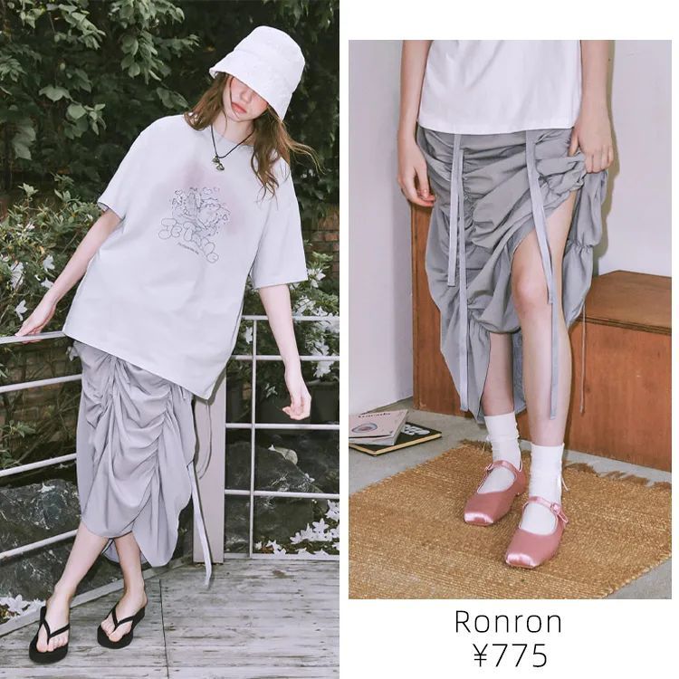 韩国品牌Ronron这条抽褶半裙在韩国超级火,好喜欢抽褶设计下自然形成的花瓣裙摆。