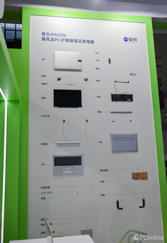 本次攀升不仅展示了在机与外设方面的创新,还带来了暴风龙P3护眼版笔记本电脑,全系SSD硬盘512G起,满足设计游戏双要求,屏幕方面采用16英寸1080P 60hz IPS防蓝光屏,屏幕比例为16:10,色域达到了100%srgb,并支持65w的C口PD快充,重量控制在了1.75kg,一键护眼,给玩家与办公人士带来更好的护眼,在拆解展台中可以看到,攀升对自身核心技术发展的重视,同时期待玩家的关注与反馈。