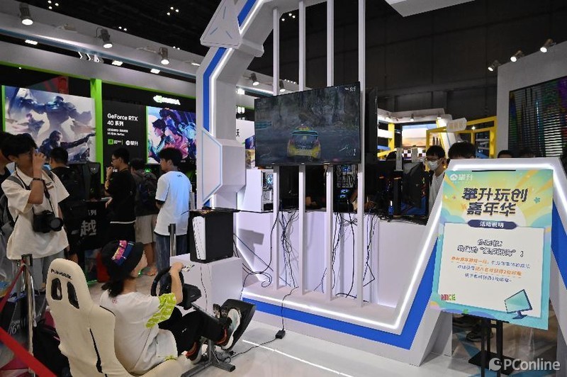 电脑厂商的创新离不开玩家的需求,攀升积极推动每一次与玩家的交流活动,在本次攀升玩创嘉年华,攀升不仅带来了富有特色的新元素电竞装备,还联合NVIDA用多台炫酷的异形主机与全新GeFoece RTXTM 40系列显卡打造了电竞体验区,在这里可以体验到最新的DLSS 3、光线追踪与NVIDIA Reflex技术。