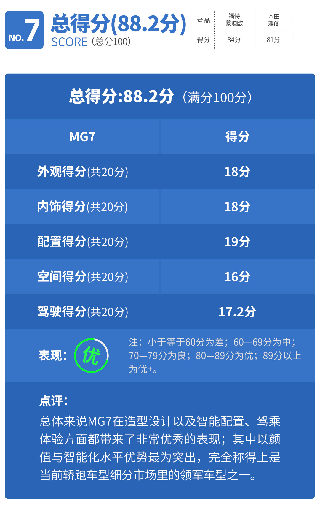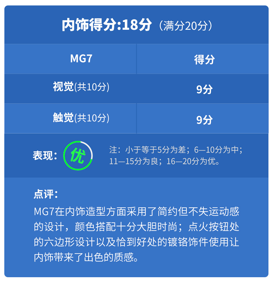 虽说MG7并非同级车型之中空间表现最优秀的车型,但得益于出色的内部空间设计,MG7实际上的乘坐空间感受算得上是相当优秀的。