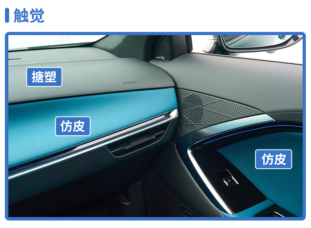 软质材质在车厢包覆材料中被大量使用,中控台与车门饰板上易于触及的区域基本采用了软质包覆,带来触手可及的精致质感。