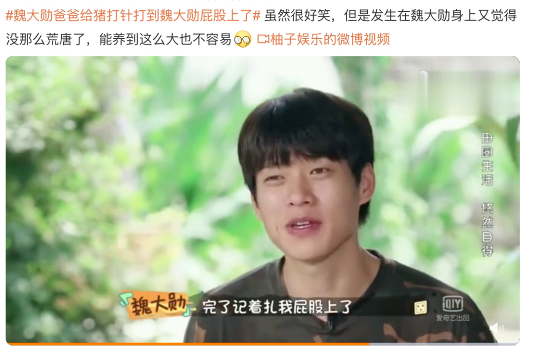 什么魏大勋爸爸给猪打针打到魏大勋屁股上了。