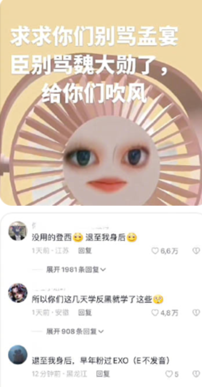 什么魏大勋的老粉反黑只会说“求求你们别骂了”,气的别家粉丝站出来,把魏大勋的粉丝护在身后,替他们征战。