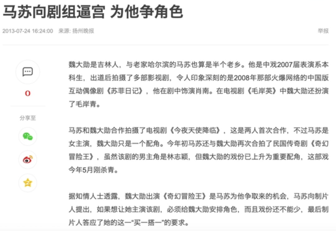他刚出道时,他就被马苏硬捧,甚至有媒体爆出马苏为魏大勋争角色。