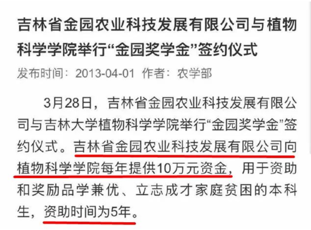 魏父曾连续五年为吉林大学植物科学学院每年提供十万元的奖学金。