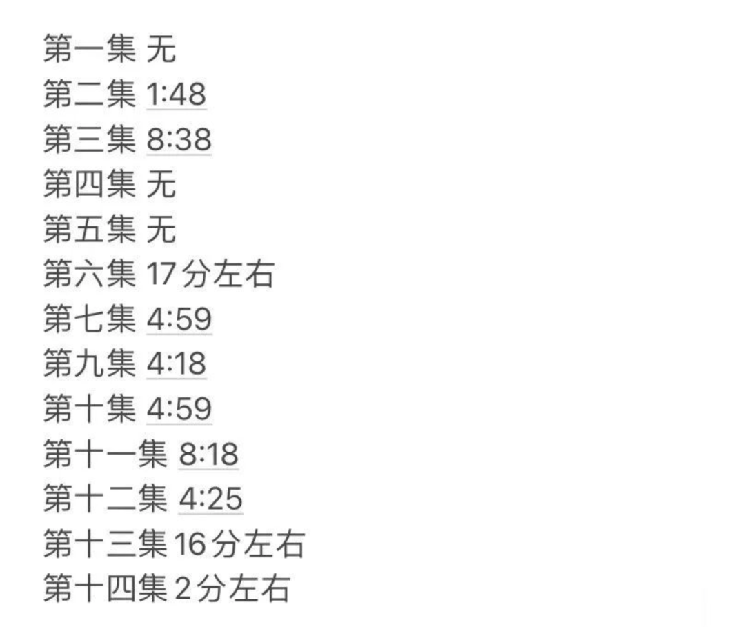 甚至观众还排出了孟宴臣在每集出场的分钟数。