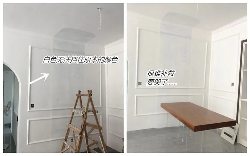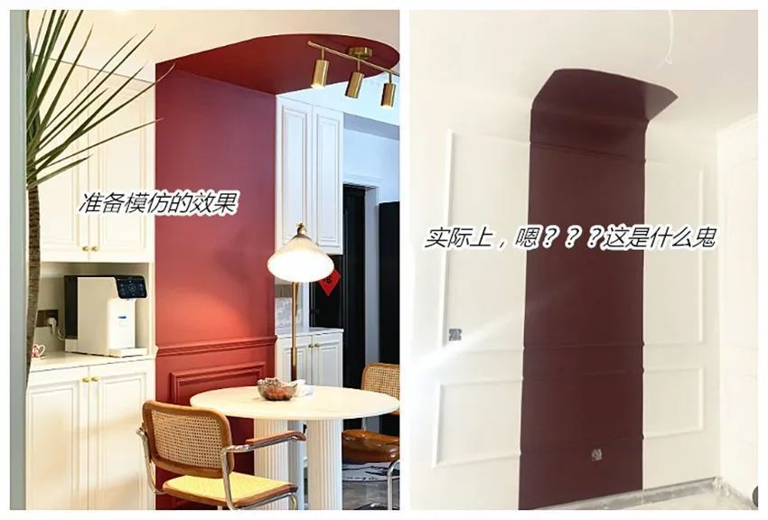 墙面刷乳胶漆不要跟风做造型,也千万不要挑战夸张的颜色,否则翻车后连补救措施都没有!这是一位朋友装修时的翻车现场,看到效果后朋友差点当场崩溃。