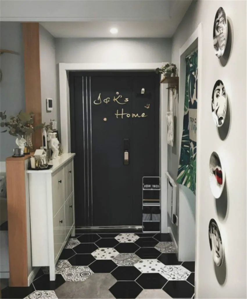 或者加上地垫,进门前蹭一蹭,减少灰尘落入室内,比下沉玄关实用多了。