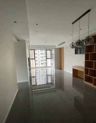 全屋通铺灰色地砖,家具不能选择黑色、灰色等深色系,米色白色等亮色才更耐看。