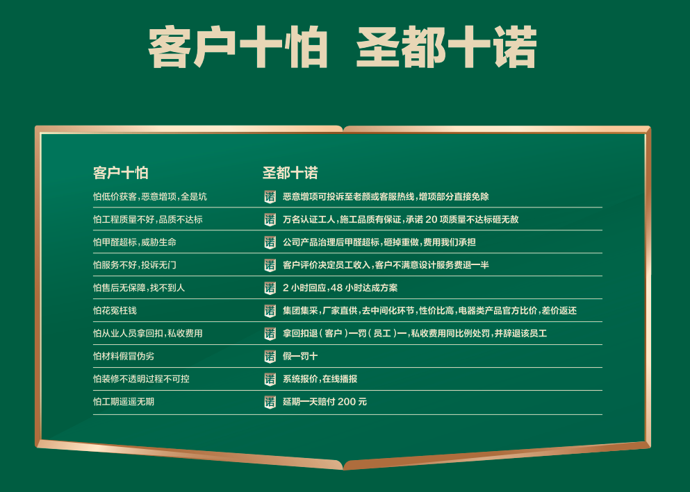 作为整装业务的引领者,圣都整装2017年进入成都,短短几年时间内,已经跃居成都本地一线装企之列,其率先提出的“透明装修”“认证工人”“品质正循环”“客户十怕,圣都十诺”“二十项砸无赦”“14815响应机制”“总经理热线”等服务理念,以及先后面世的Q7、A10、A3等装修套餐,为近十万客户提供过贴心服务,也为众多成都业主带去了优质装修体验,收获海量口碑好评。