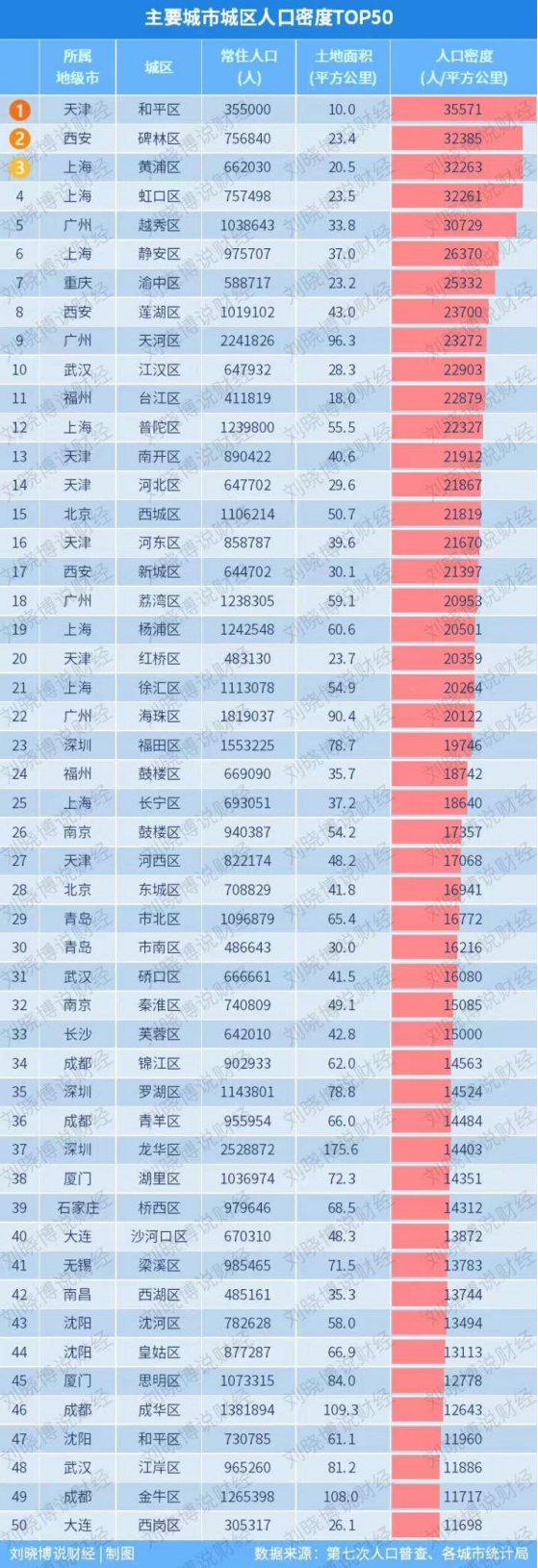 因此人们不必挤在拥挤的市中心谋生,这对市中心人口形成分流。财经博主@刘晓博曾经统计过主要城市城区人口密度TOP50,发现江浙城市少有上榜。