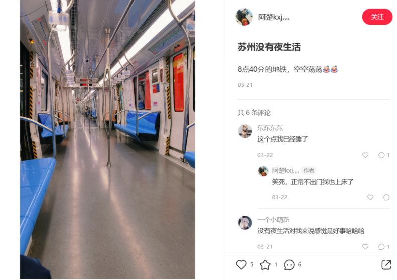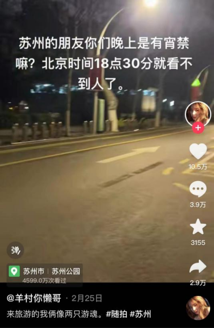 今年,一位网友在苏州旅游的时候,发现晚上六点半,街上竟然已经空空如也,还在街上的自己宛如一只游魂,震惊得她忍不住发问: