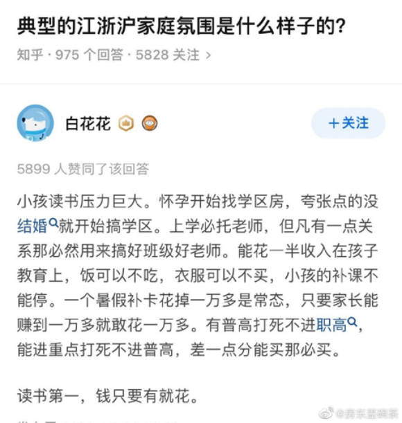 教育是整个家庭的核心,饭可以不吃,衣服可以不买,但是小孩的补课不能停。