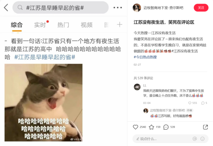 有网友出来“拨乱反正”,表示江浙也是有夜生活的,但是这里的夜生活仅限于高中——