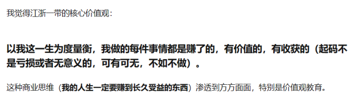 或者更深一层分析,正如知乎上一位江浙网友所说,江浙地区盛行的实用主义商业思维,是: