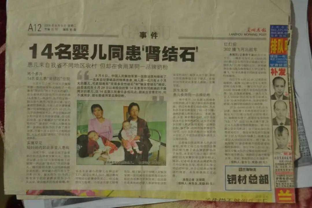《东方早报》在这天发表报道,甘肃14名5到10个月的婴幼儿同时患肾病,疑因喝了三鹿奶粉所致。