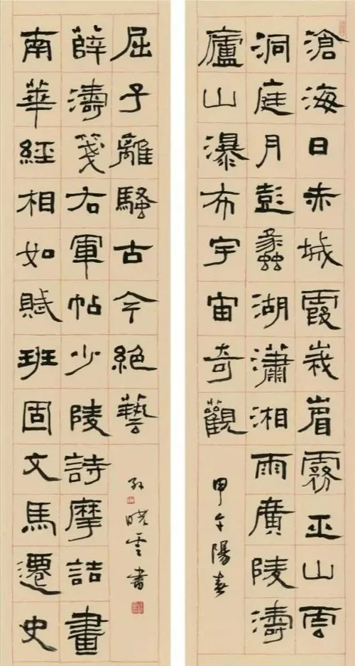 虽然书体相同,但是在韵味上有很大不同,相信很多朋友也有自己的看法和见解。对比两位老师的隶书作品中,各位书友更喜欢谁的?