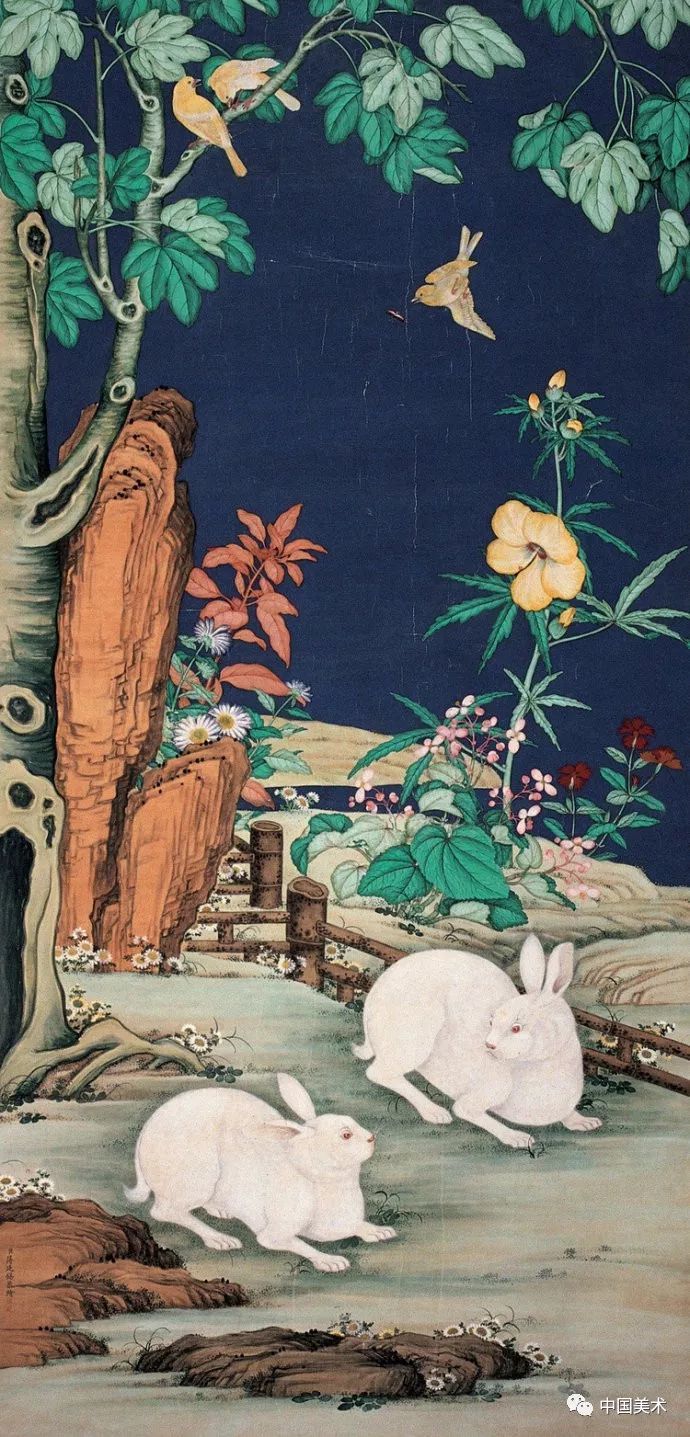 蒋廷锡 双兔图 镜心 尺寸:174×84cm