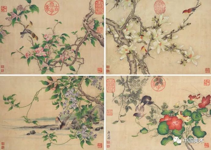 蒋廷锡 花鸟四片 册页 尺寸:23×32cm×4
