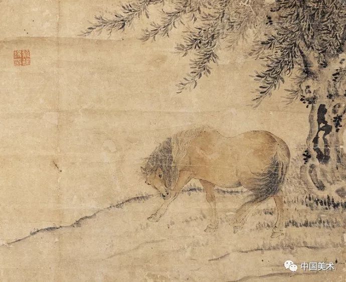 蒋廷锡 柳岸立马 立轴 尺寸:23×29cm