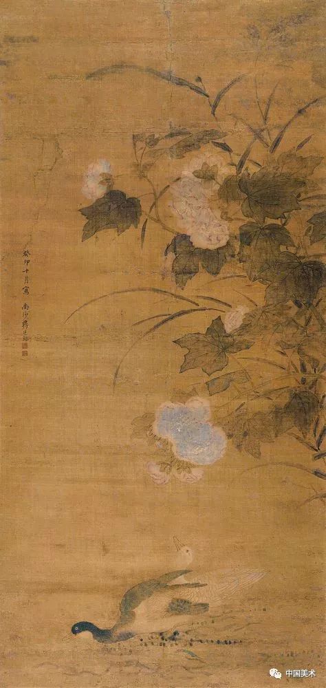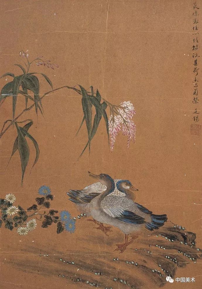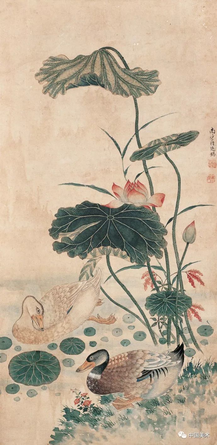 蒋廷锡 1723年作 芙蓉双鸭 立轴 尺寸:121.5×57.5cm