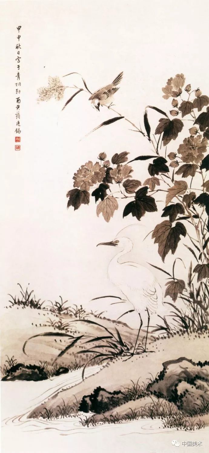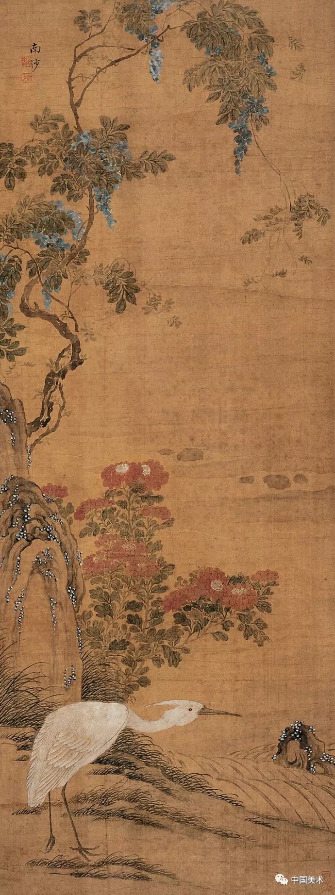 蒋廷锡 芙蓉鹭鸶图 立轴,纸本,设色,纵127.7厘米,横60.5厘米。北京故宫博物院藏。