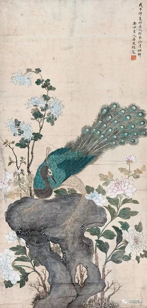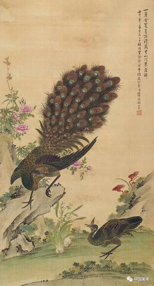 蒋廷锡 1702年作 孔雀仙芝 立轴 尺寸:134×73cm