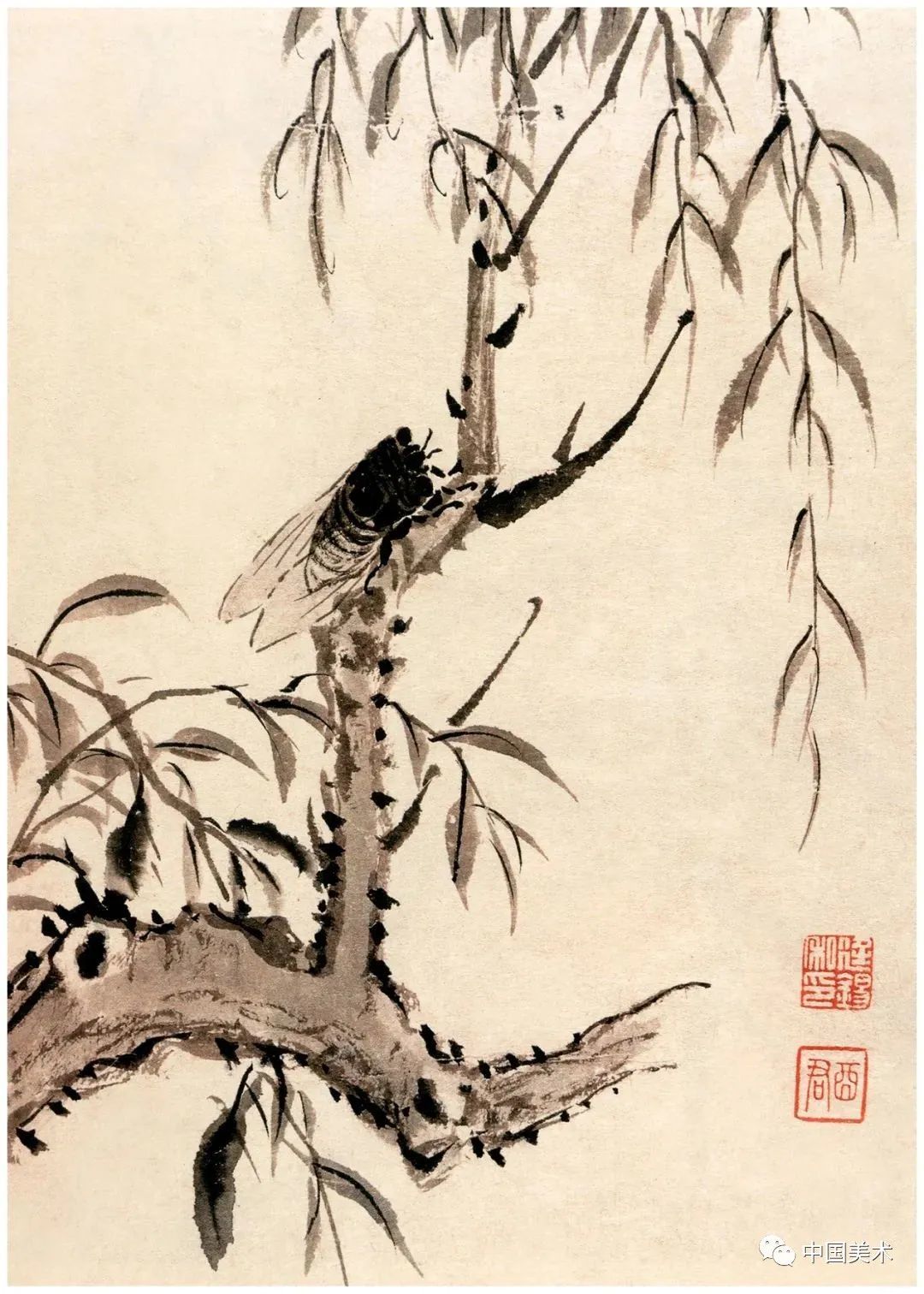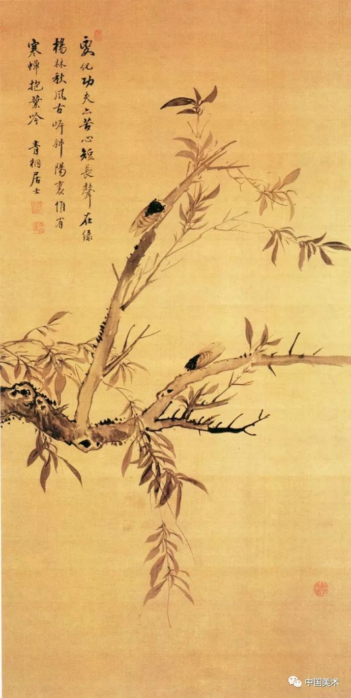 蒋廷锡 柳蝉图 立轴,绢本,墨笔,纵94厘米,横48.5厘米。北京故宫博物院藏。