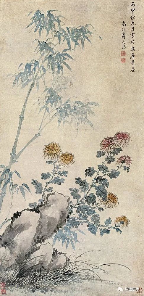 蒋廷锡 1716年作 竹菊贞石 立轴 尺寸:108×51.5cm