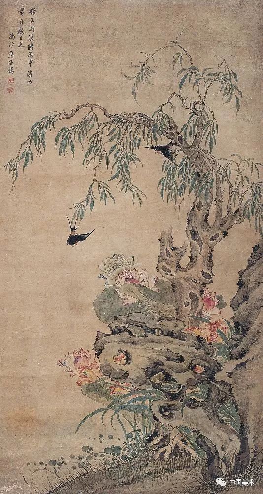 蒋廷锡(1669-1732),江苏常熟人。字扬孙,一字西君,号南沙、西谷、青桐居士,江苏常熟人。康熙四十二年进士,雍正年间曾任礼部侍郎、户部尚书、文华殿大学。清代康熙、雍正年间的著名花鸟画家,变恽南田没骨法之纤丽,开创“蒋派”花鸟画。